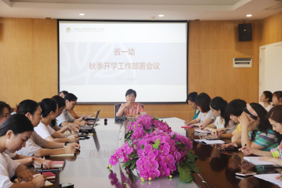 奋楫争先启新程。9月3日,省一幼党总支书记、院长罗红辉主持召开新学期全体教职工大会,强调要深入学习习近平总书记“七一”重要讲话精神,统筹好发展与安全两件大事,同心协力办好人民满意的学前教育。要抓好队伍建设,提升队伍整体业务能力和工作水平。要抓好教保部门课程建设,以教科研为载体,着眼安吉游戏、音乐教育、科研课题,积极探索特色课程。