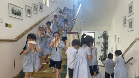 演练前期,院安全小组结合实际制定详细周密的消防演练方案,对师生撤离路线作精确规划,对各重要位置专门安排行政和护岗老师蹲点协助疏散撤离;各班教师结合视频、故事帮助孩子了解一定的消防逃生知识。