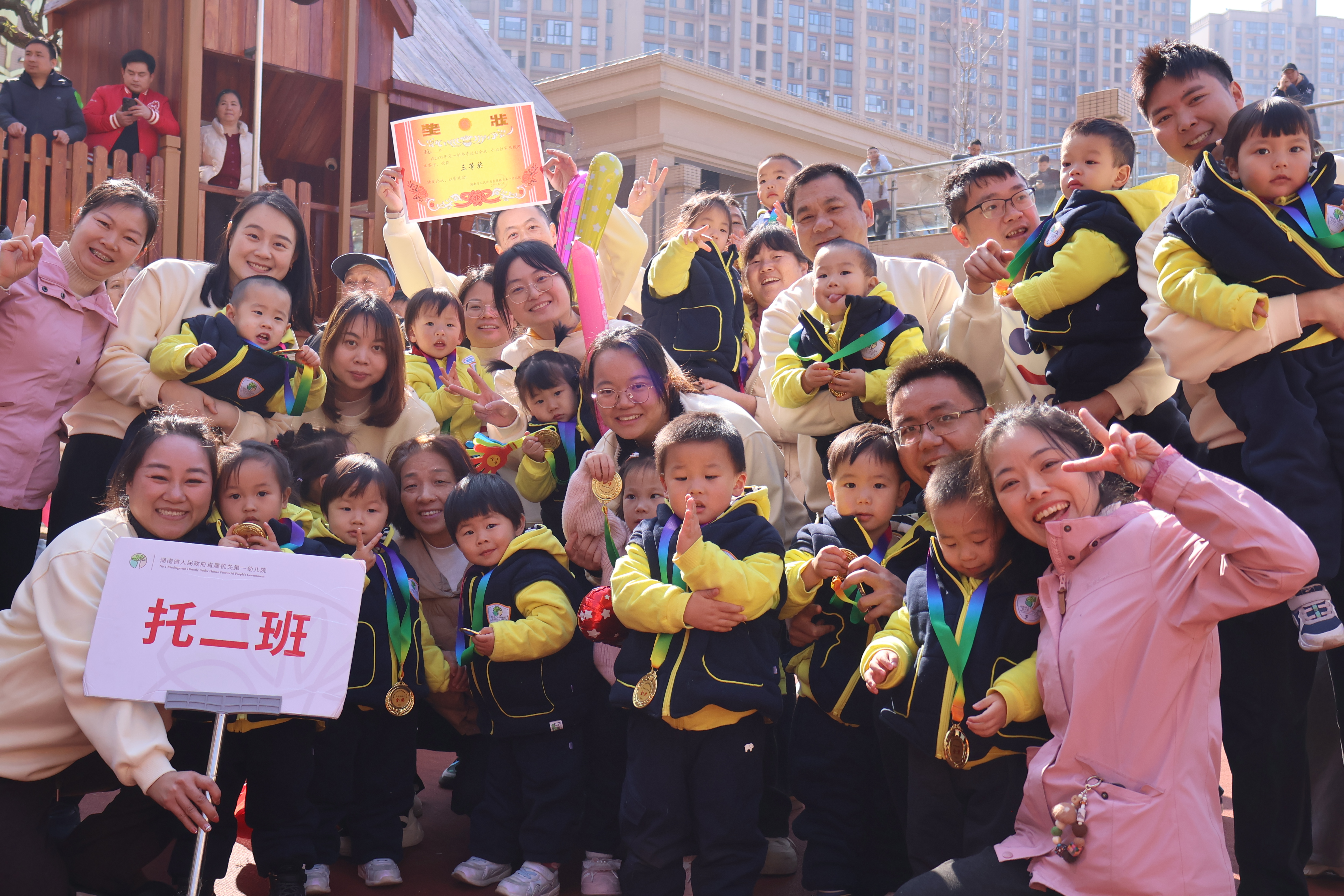 闭幕式上,家长代表分享参与感悟,亲手为孩子们佩戴象征荣誉的奖牌。院领导为获奖团队颁发奖状。当闪亮的奖牌佩戴在胸前,孩子们的脸上绽放出灿烂笑容。
