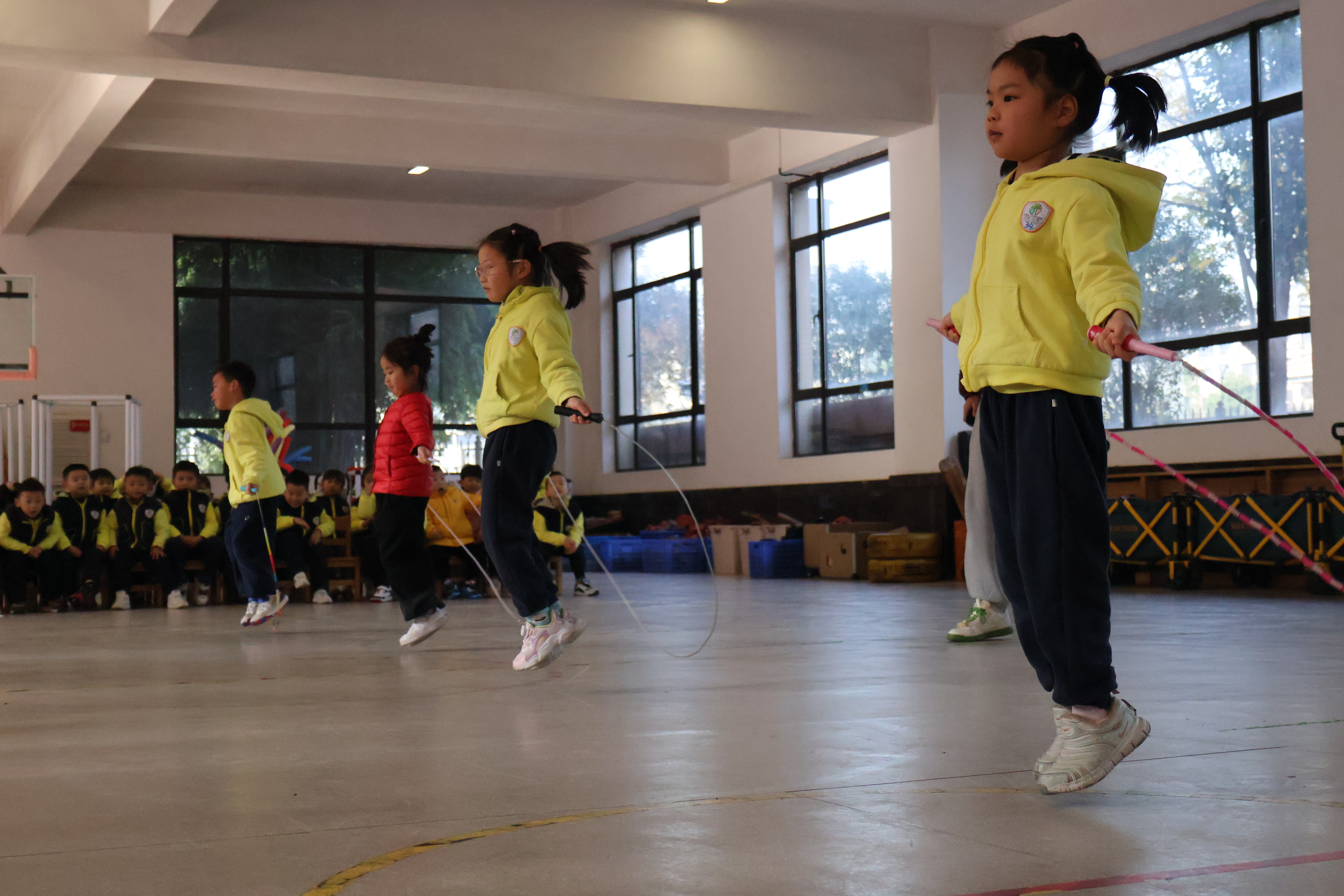 团体展示精彩纷呈。教师节目以活力点燃全场,托班、小班亲子律动温馨有爱,中班篮球操动感十足,大班创新融合舞龙、传统武术与花样跳绳,展现了省一幼将民间传统游戏融入体育活动的生动实践。
