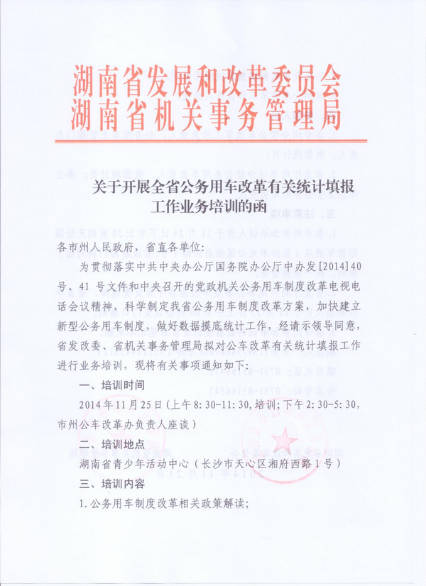 关于开展全省公务用车改革有关统计填报工作业务培训的函