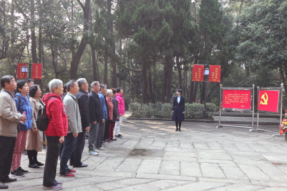 上午10时许,大家怀着无比敬仰的心情,缓步走进杨开慧烈士陵园,列队肃立于毛主席《蝶恋花·答李淑一》诗碑前,向烈士默哀、鞠躬、致敬。老书记鲁乔松代表全体党员向烈士敬献花篮。老同志们庄严宣誓、重温入党誓词。随后,老同志一行参观了杨开慧亲属墓、开慧纪念馆、开慧故居。在参观过程中,老同志们认真听取工作人员的讲解和现场教学,详细了解杨开慧烈士学习、生活和革命经历。大家同感慨,杨开慧烈士以国家和民族的解放事业为重、舍身报国,体现了共产党人钢铁般的革命意志和坚不可摧的信仰与信念!她与毛主席之间的旷世爱情惊天地、泣鬼神!大家纷纷表示,一个时代有一个时代的主题,一代人有一代人的使命。我们要团结一致,在习近平新时代中国特色社会主义思想指引下,为新中国“两个百年”奋斗目标,贡献一份力量和光与热!