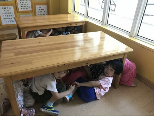 演练前,各班教师组织幼儿学习了防震知识和地震发生时的应急避险动作,进一步加强了对幼儿有关地震知识和演练安全知识的教育。下午15点整,随着警报的响起,各班教师马上停止一切活动,告知幼儿“地震了,不要慌”,并指挥幼儿紧急避险。 警报声停止后,全体师生护着头,弓着腰,快速按指定的路线撤离危险地带,到达幼儿园户外大操场。班主任立即清点人数向院长汇报。演练结束后,后勤主任朱小龙对本次活动进行了总结,从警报声响起全园师生只用3分10秒时间就安全撤离。整个疏散演练过程既紧张又有条不紊,没有疏漏一个幼儿,没有出现碰撞和踩踏事件,达到预期效果。