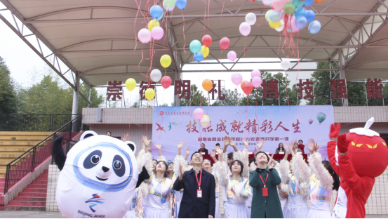 随后,学校社团表演冬奥会主题曲“一起向未来”手势舞。“奋斗正当时,技能成就精彩人生”的誓言久久回荡在校园上空,飘荡在每位商院学子的心中。