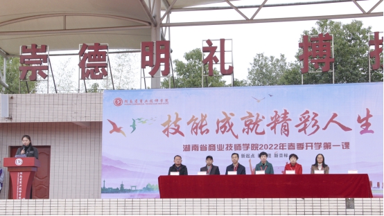 学院党委书记罗莹以“奋斗正当时,技能成就精彩人生”为题,为全体师生讲授开学第一课。她寄语同学们,要胸怀“国之大者”,正心修德,做品德高尚的人。坚持爱国和爱党、爱社会主义统一起来,把“请党放心,强国有我”的青春誓言内化于心、外化于行,始终听党话、跟党走,让红色成为青春的底色。要坚守“工匠精神”,匠心练技,做技能精湛的人。要树立“策马扬鞭自奋蹄”的意识,勤学习,会学习,以知促行、以行求知,修匠心、练匠技、践匠行;学会思辨,明辨是非,百折不挠,学会合作,养成思考习惯和科学精神。要崇尚“劳动光荣”,本心立身,做甘于奉献的人。崇尚劳动,热爱劳动,诚实劳动,相信每个人的精彩人生靠辛勤劳动、科学劳动来实现;劳动是美丽的,有着火热情感的商院师生们更是校园里最美丽的风景。最后,她号召全院师生“莫忘少年凌云志,曾许天下第一流”,以虎虎生威的雄风、生龙活虎的干劲、气吞万里如虎的精神,坚定地走技能立业、技能成才、技能报国之路,用自己的精湛的技能创造精彩人生!