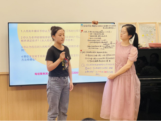 教研前期,参研的所有教师以“依恋关系”理论作为婴幼儿入托适应的基础理论依据进行了深入学习。同时,为了解教师的日常照护现状,使教研能找准问题、直面问题、解决问题,制定了调查问卷,并梳理出本次教研集中研讨的四个问题:入托和午睡环节的分工、了解宝宝的个性化需求、托育和幼教教师在照护方法上的区别、缓解高需求宝宝焦虑情绪的策略。