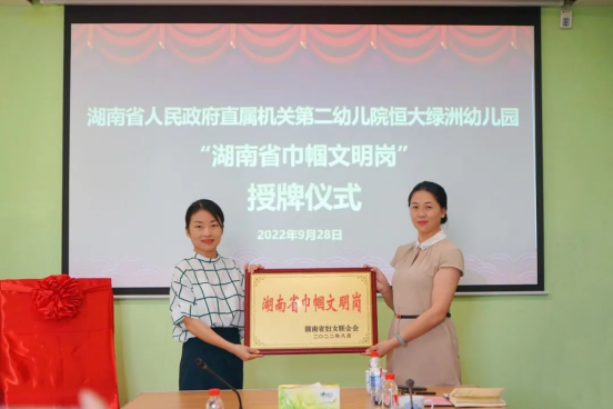 省二幼恒大绿洲幼儿园荣获“湖南省巾帼文明岗”称号
