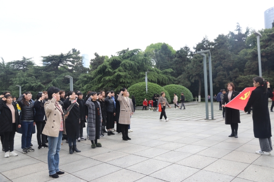 在烈士纪念碑前,大家怀着无比崇敬的心情,向对革命事业作出卓越贡献的先烈们敬献鲜花,向长眠于此的革命英烈致以深深的哀悼和敬意。在烈士塔下,面对鲜艳的党旗,党支部书记、院长罗红辉带领全体党员庄严举起右拳,重温入党誓词,留下自己的铮铮誓言,表达对党的忠诚和热爱。