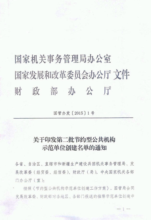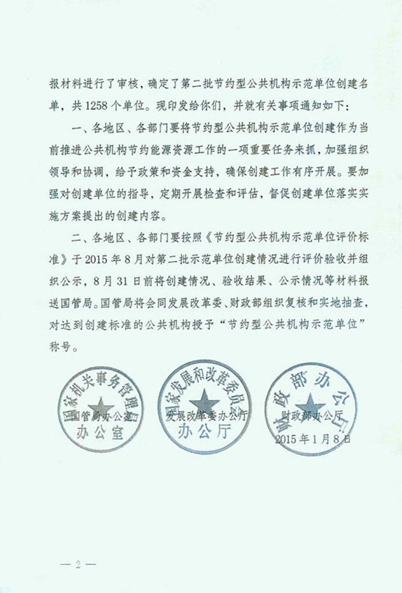 名称: 国家机关事务管理局办公室 国家发展和改革委员会办公厅 财政部办公厅 关于印发第二批节约型公共机构示范单位创建名单的通知