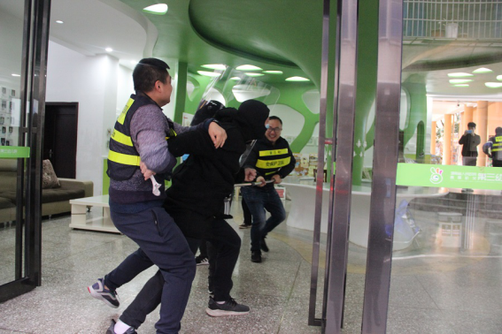 安全小组成员协助门卫制止歹徒